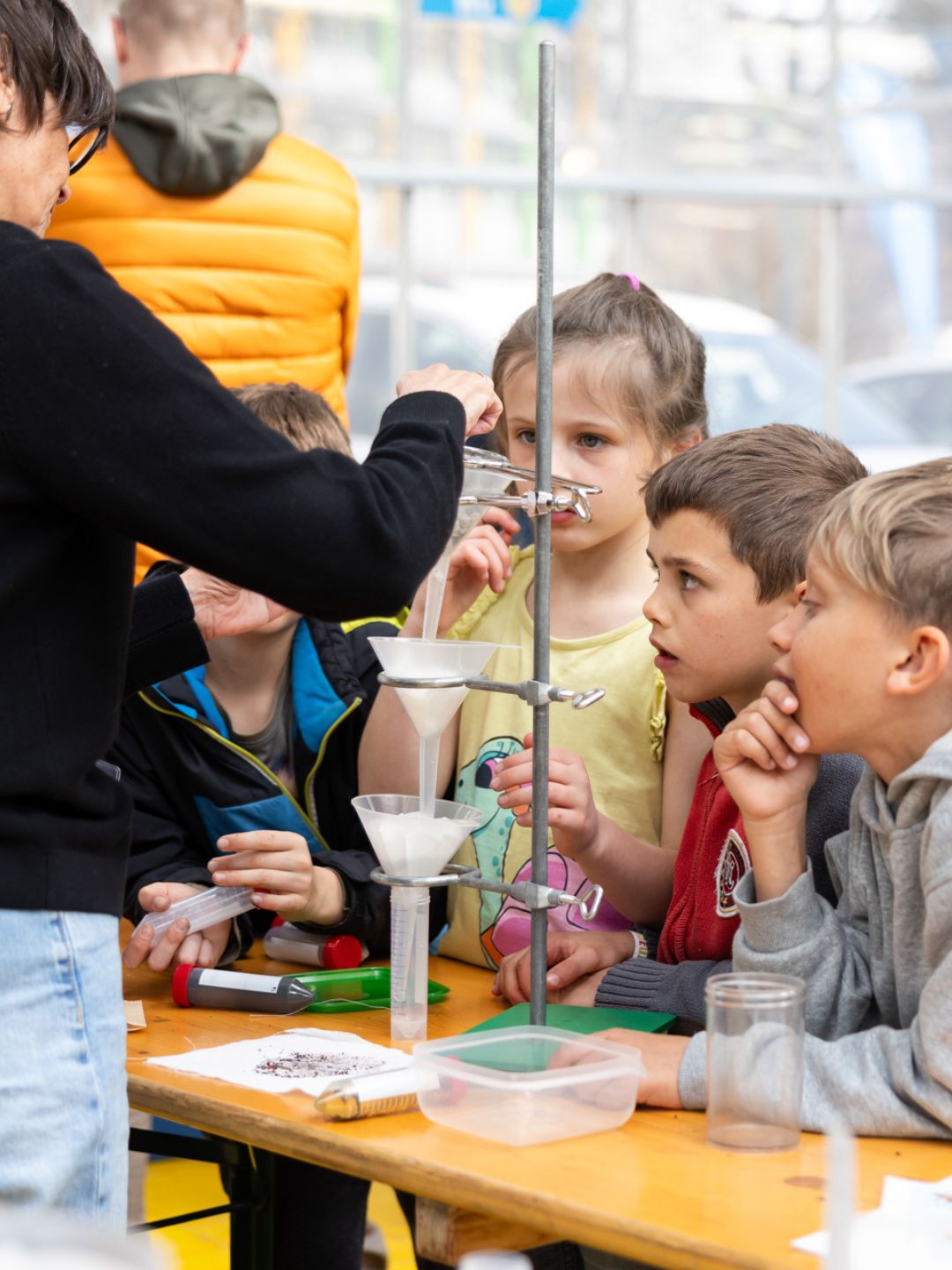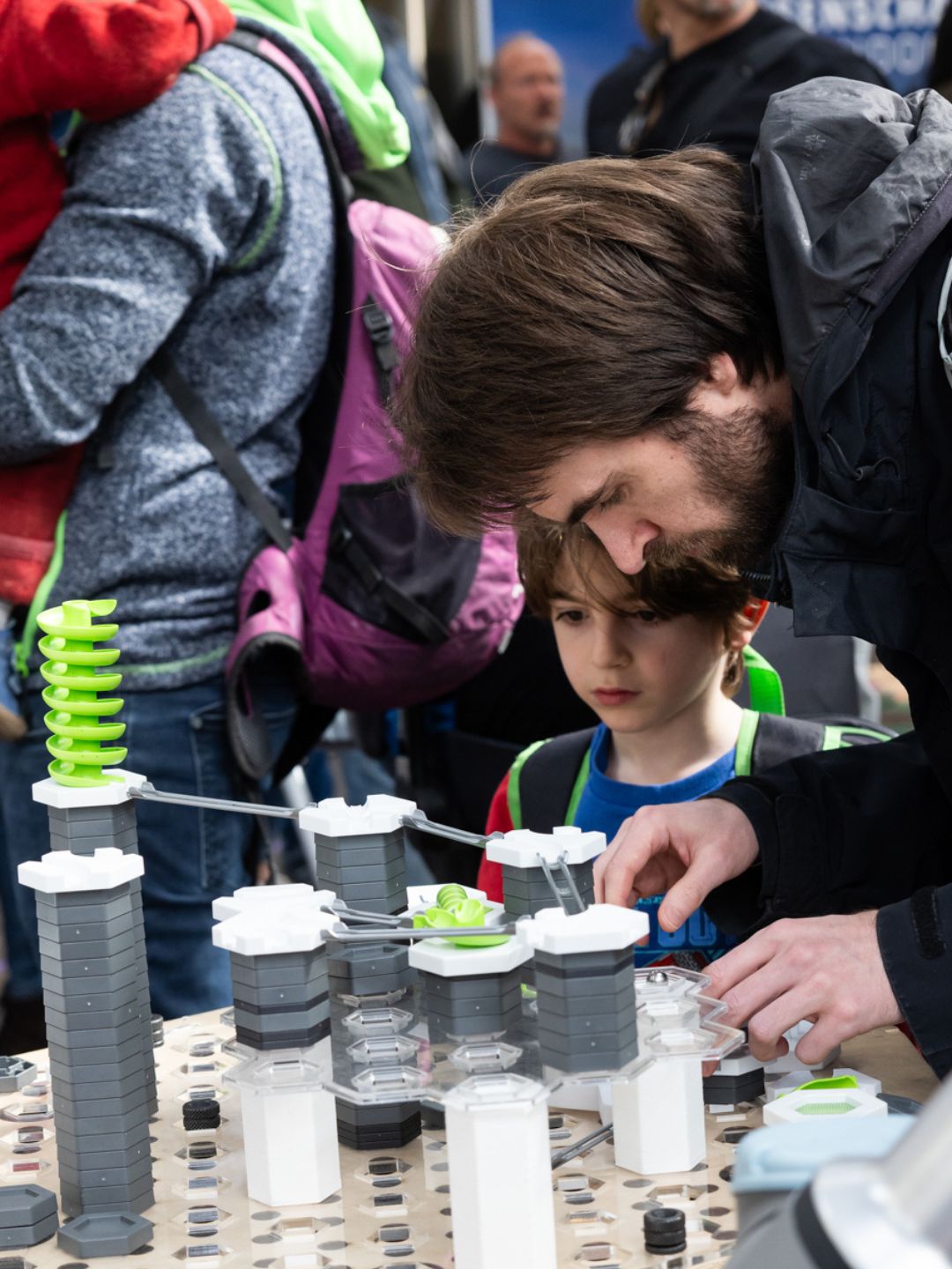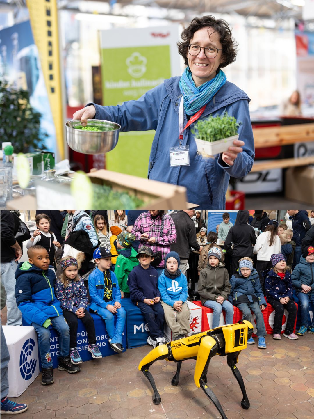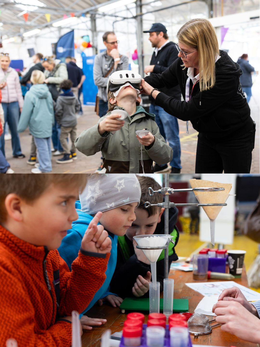 An über 20 interaktiven Stationen konnten die jungen Besucher:innen Wissenschaft unmittelbar erleben. Die Bandbreite reichte von Robotik, künstlicher Intelligenz und 3D‑Druck über Biotechnologie und naturwissenschaftliche Experimente bis hin zu Virtual‑Reality‑Erlebnissen und Weltraumforschung.