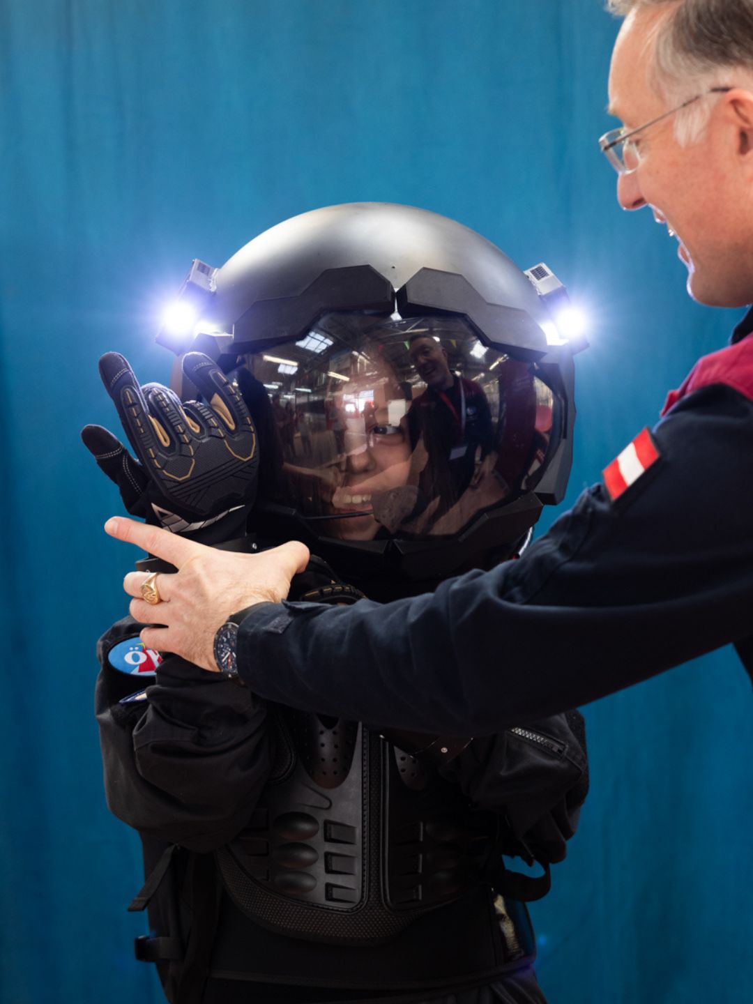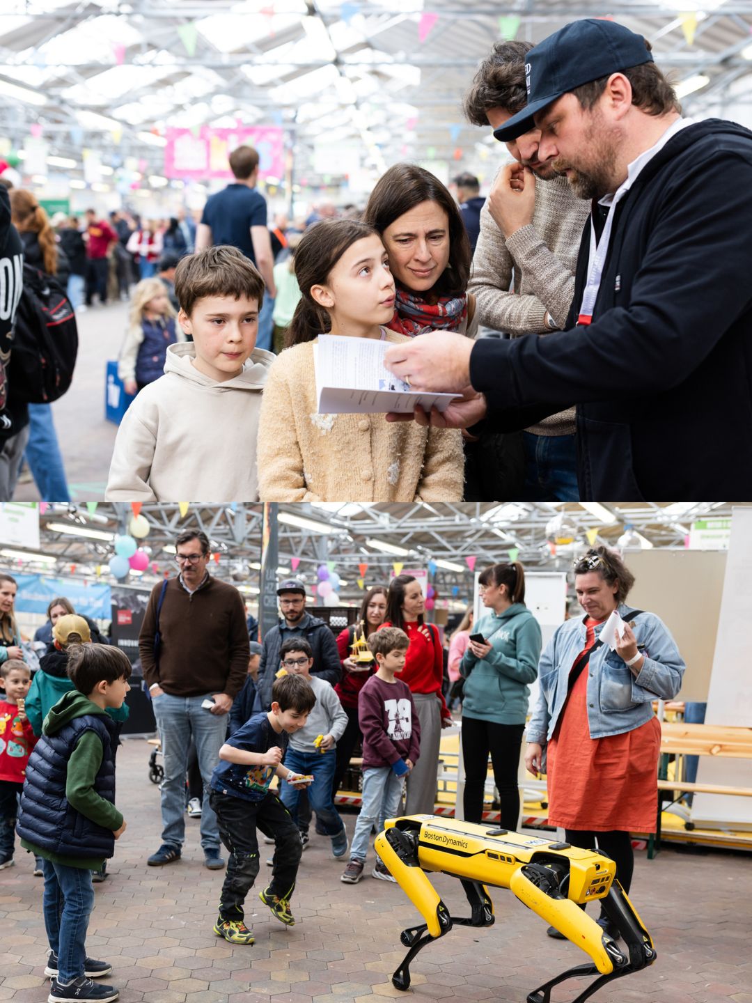 Besonders große Aufmerksamkeit zog der Roboterhund von Boston Dynamics auf sich, dessen realistische Bewegungen Kinder wie Erwachsene gleichermaßen faszinierte. Großen Andrang fang auch die Station vom österreichischen Weltraumforum, an der Kinder in echte Analog‑Raumanzüge schlüpfen konnten.