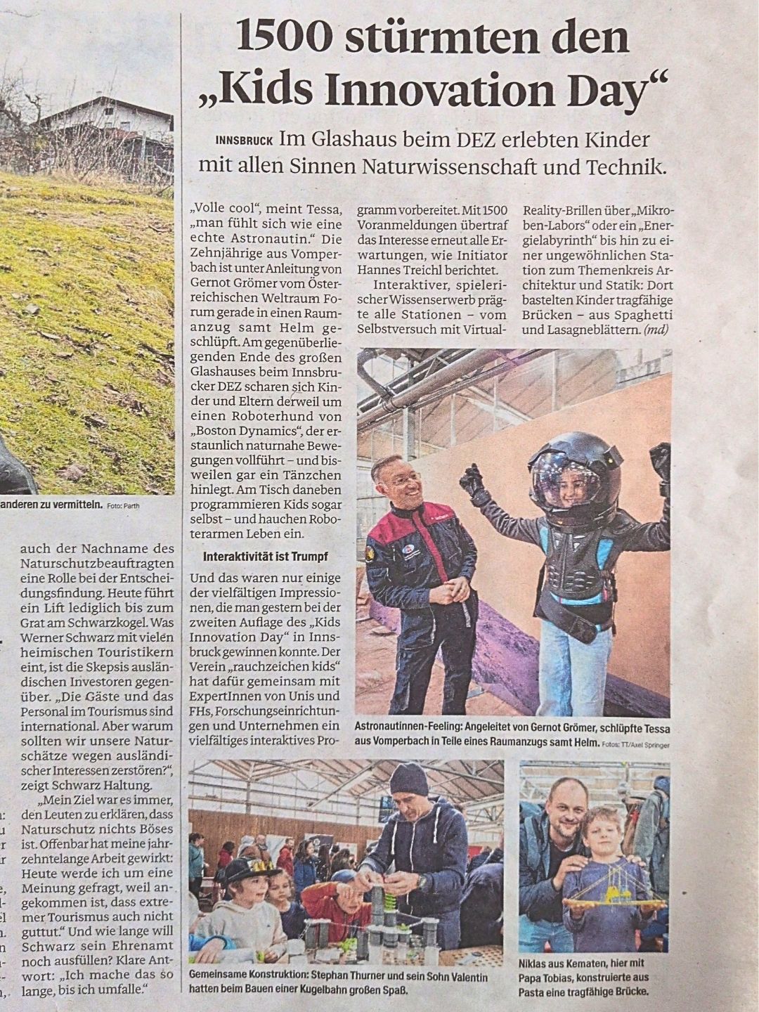 Hunderte Kinder zwischen sechs und zwölf Jahren strömten gemeinsam mit ihren Familien zu Tirols größtem Mitmachevent rund um Innovation, Forschung und Technologie. Die Veranstaltung war für alle kostenlos und fand im Rahmen der Tiroler Innovationswoche statt.